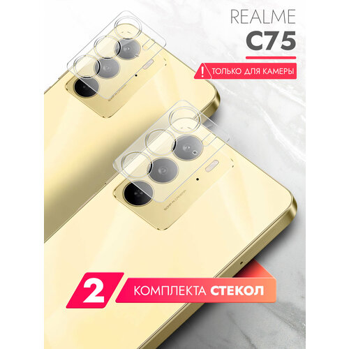 Защитное стекло на Камеру для Realme C75 , 2 штуки, (гибридное: пленка+стекловолокно), прозрачное силиконовая клеевая основа тонкое Hybrid Glass, Brozo