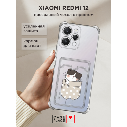 Чехол на Xiaomi Redmi 12 (Сяоми Редми 12) с картой и принтом Котик спит в кармане