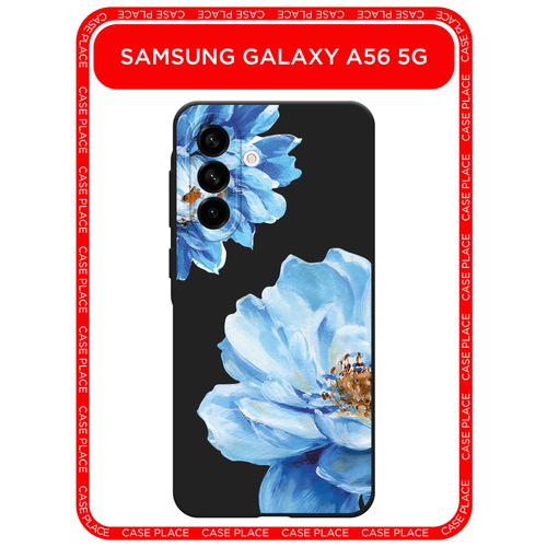 Черный матовый чехол на Samsung Galaxy A56 5G / Самсунг Галакси А56 5G с принтом Голубые клематисы