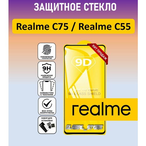 Защитное полноэкранное стекло для Realme C75 / Realme C55 ( Реалми Ц75 / Реалми С55 ) Full Glue