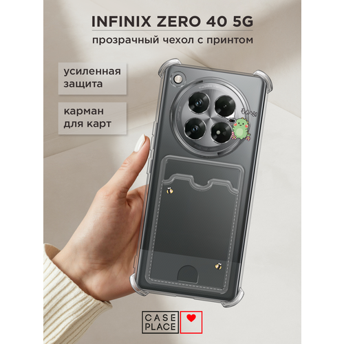 Чехол на Infinix Zero 40 5G (Инфиникс Зеро 40 5G) с картой и принтом Динозавр и пчёлки