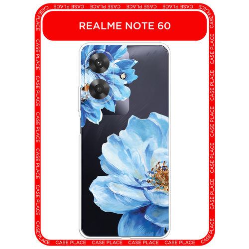 Чехол на Realme Note 60/60X / Реалми Нот 60/60X с принтом Голубые клематисы, прозрачный