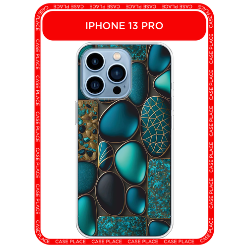 Чехол на Apple iPhone 13 Pro / Айфон 13 Про с принтом Бирюзовые камни