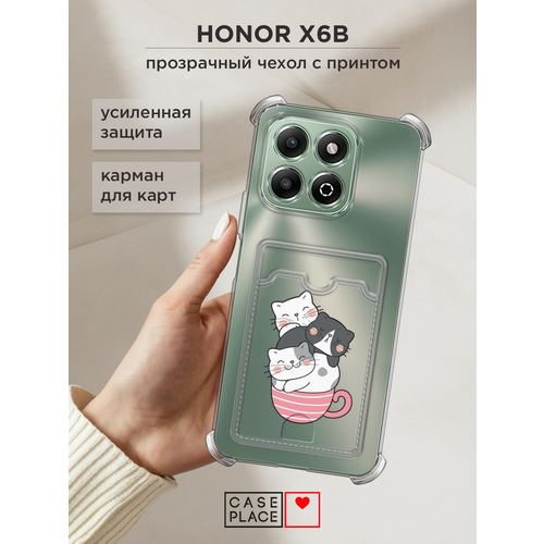 Чехол на Honor X6b (Хонор X6b) с картой и принтом Коты в чашке