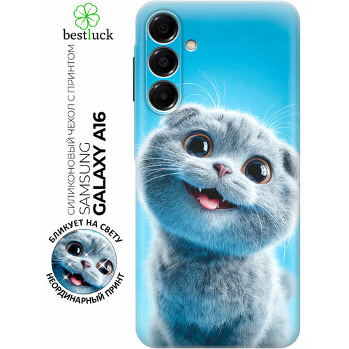 Силиконовый чехол на Samsung Galaxy A16 с принтом "Серый котик на голубом"