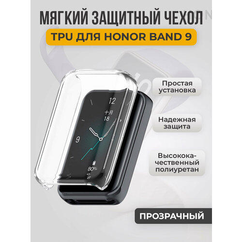 Мягкий защитный чехол TPU для Honor Band 9, прозрачный