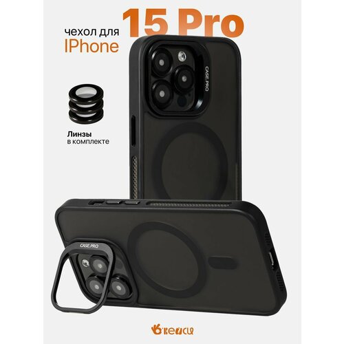 Чехол на iPhone 15 Pro с защитной линзой и держателем, черный