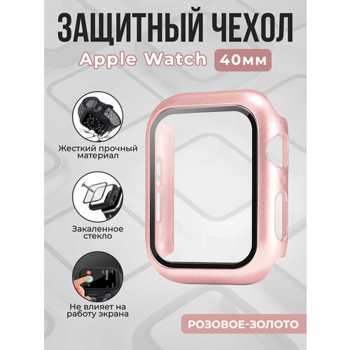 Жесткий чехол с защитным стеклом для Apple Watch 4/5/6/SE 2/SE 3, 40мм, розовое-золото