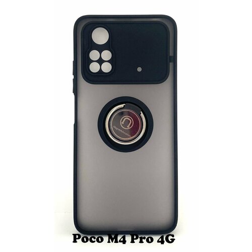 Чехол Poco M4 Pro 4G противоударный (Брони чехол) с кольцом-подставкой и металлической пластиной