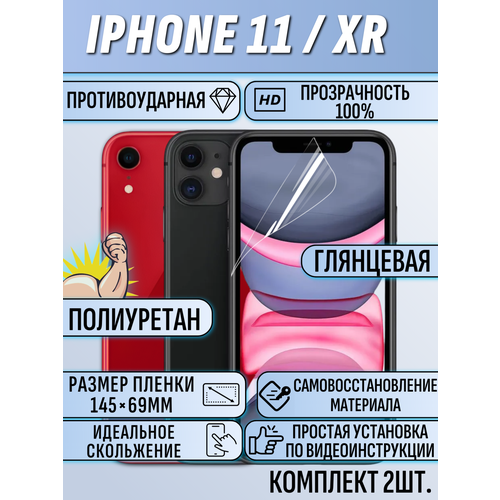 Гидрогелевая пленка для Apple iPhone XR / 11 глянцевая на весь экран 2шт