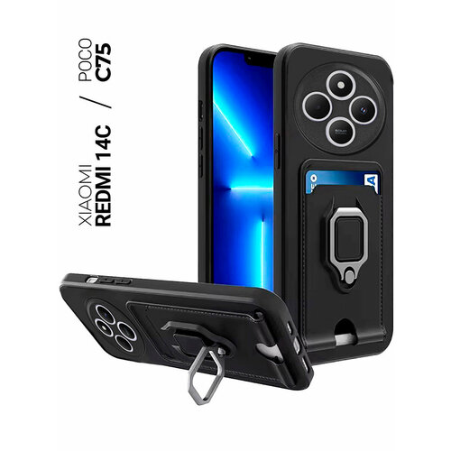 Противоударный чехол на Xiaomi Redmi 14C / Poco C75 с защитой камеры и карманом