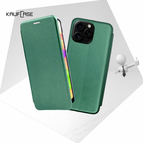 Чехол книжка для телефона Apple iPhone 16 Pro Max (6.9"), темно-зеленый. Текстура под кожу