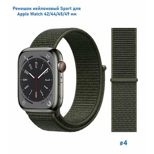 Ремешок нейлоновый Sport для Apple Watch 42/44/45/49 мм, на липучке, темно-зеленый (4)
