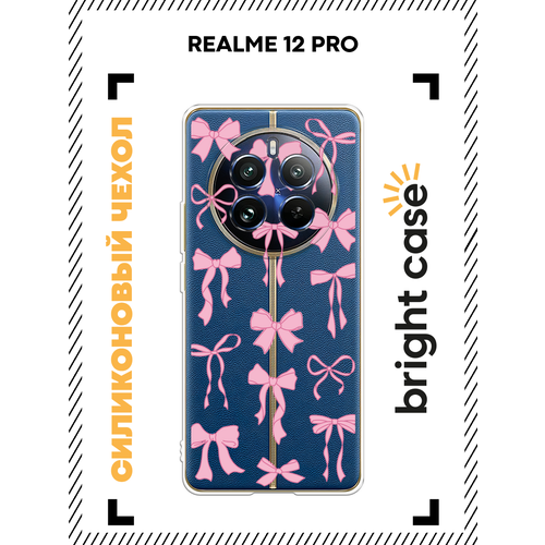 Чехол на Realme 12 Pro/Realme 12 Pro Plus / Реалми 12 Про/Реалми 12 Про Плюс с принтом Розовые бантики, прозрачный