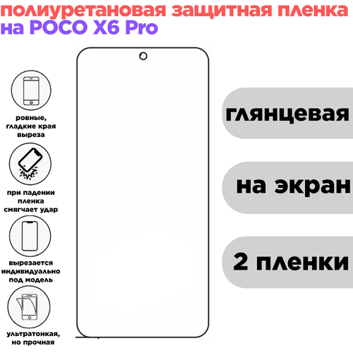 Комплект 2 шт. Гидрогелевая полиуретановая защитная пленка для POCO X6 Pro, глянцевая