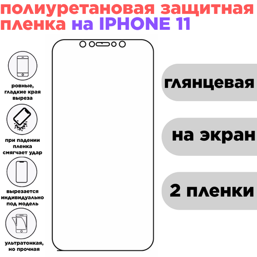 Комплект 2 шт. Гидрогелевая полиуретановая защитная пленка для iPhone 11, глянцевая