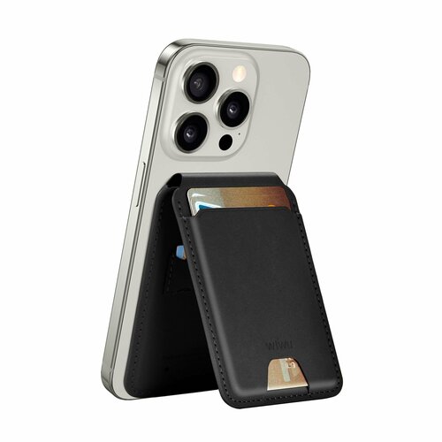 Магнитный кошелек-картхолдер для смартфона с подставкой и GPS трэкером WiWu Mag Wallet FM MW-005, Black