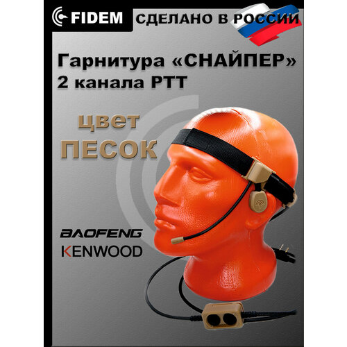 Гарнитура для рации Baofeng, Kenwood "Снайпер"с двухканальной тангентой, радиосвязь FIDEM(песок)