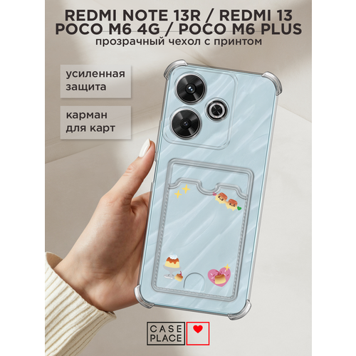 Чехол на Xiaomi Redmi Note 13R/Redmi 13/Poco M6 4G/M6 Plus (Сяоми Редми Ноут 13R/Редми 13/Поко М6 4G/M6 Плюс) с картой и принтом Корейский десерт