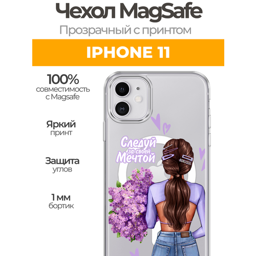 Чехол на Айфон 11 (Apple iPhone 11) MagSafe с магнитом и принтом "Следуй за своей мечтой"