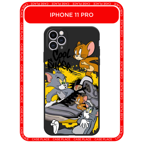 Черный матовый чехол на Apple iPhone 11 Pro / Айфон 11 Про с принтом Том, Джерри и кроссовок