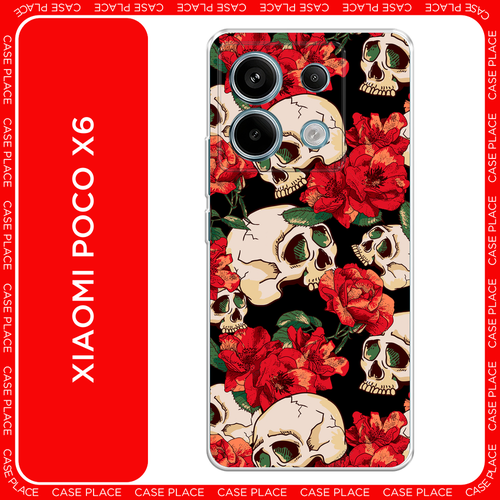 Чехол на Poco X6/Redmi Note 13 Pro 5G / Поко X6/Редми Нот 13 Про 5G с принтом Черепа с цветами