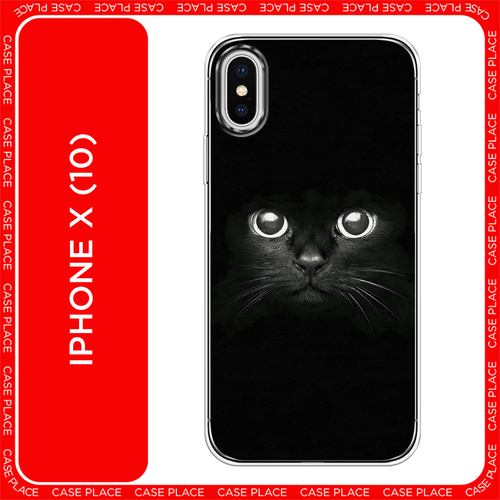 Чехол на Apple iPhone X / Айфон X с принтом Взгляд черной кошки