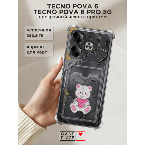 Чехол на Tecno Pova 6/6 Pro 5G (Текно Пова 6/6 Про) с картой и принтом Милый мишка с сердечком