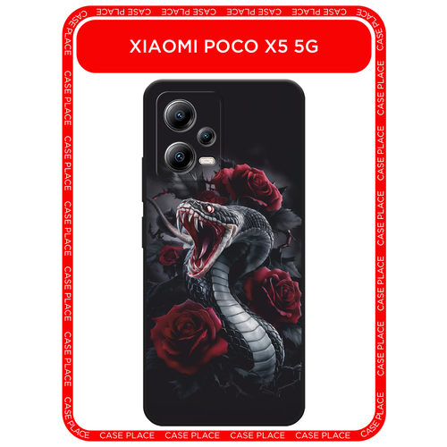 Черный матовый чехол на Xiaomi Poco X5 5G / Сяоми Поко X5 5G с принтом Dark snake