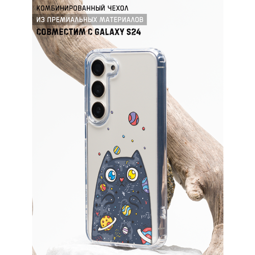 Чехол Mcover "Кот Вселенная", для Galaxy S24, силиконовый, ударопрочный, с рисунком