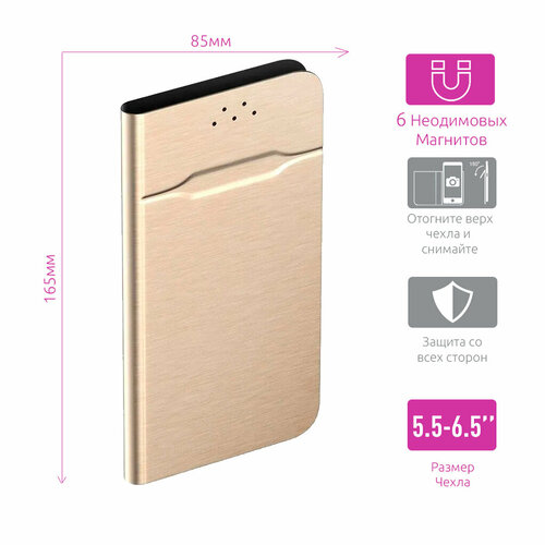 Чехол-книжка универсальный для смартфонов р. L, 5.5"-6.5", золотой