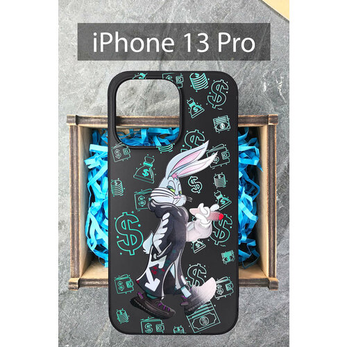 Силиконовый чехол Заяц Банни неон для iPhone 13 Pro / Айфон 13 Про