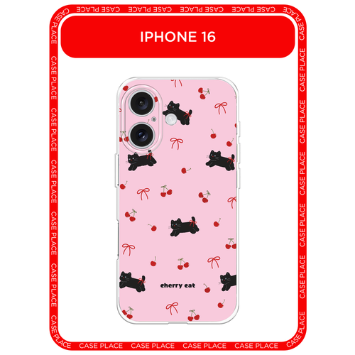 Силиконовый чехол на Apple iPhone 16 / Айфон 16 с принтом cherry cat