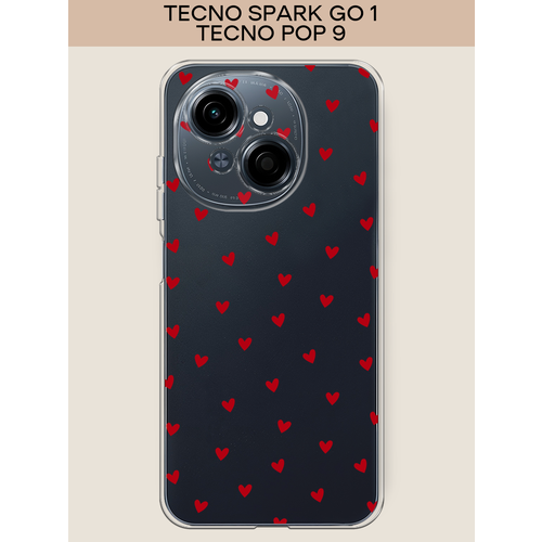 Чехол на Tecno Spark Go 1/Pop 9 / Текно Спарк Go 1/Поп 9 с принтом Red hearts, прозрачный