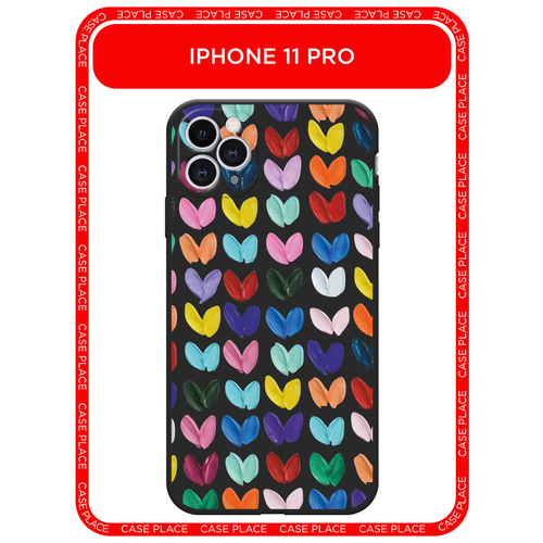 Черный матовый чехол на Apple iPhone 11 Pro / Айфон 11 Про с принтом Сердечки из краски