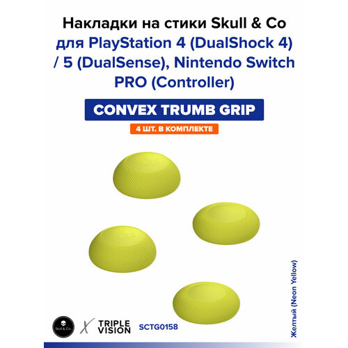 Накладки на стики "Convex Thumb Grip" Skull & Co для PlayStation 4 (DualShock 4) / 5 (DualSense), Nintendo Switch PRO (Controller), 4 штуки, Желтый (Neon Yellow)