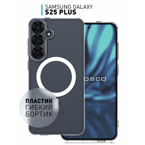 Пластиковый чехол с магнитным кольцом на Samsung Galaxy S25 Plus (Самсунг Галакси С25 Плюс), бренд Rosco, прозрачный