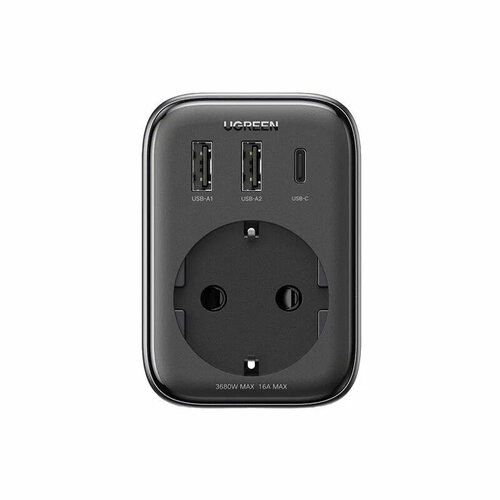 Зарядное устройство Ugreen CD314 DigiNest Outlet Extender Converter 2xUSB-A + USB-C 30W EU/UK Black 15261