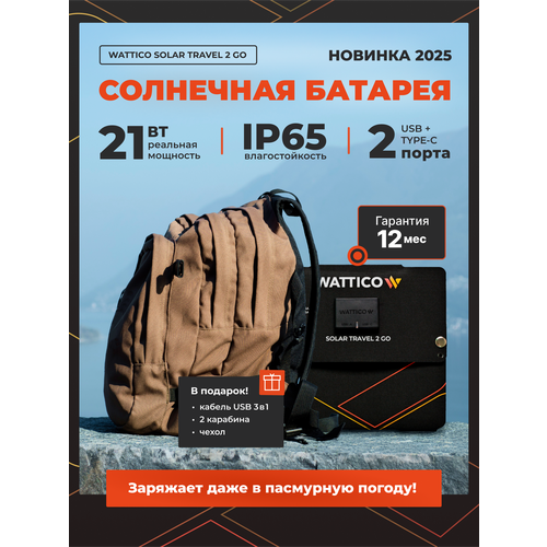 Портативная солнечная зарядная панель/батарея Wattico Solar Travel 2GO, 21Вт