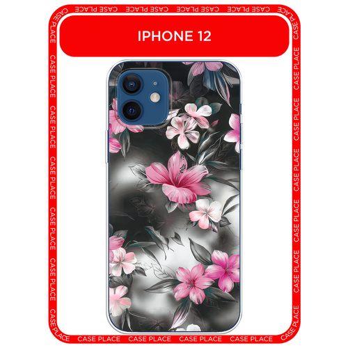Чехол на Apple iPhone 12/12 Pro / Айфон 12/12 Про с принтом Цветы на сером