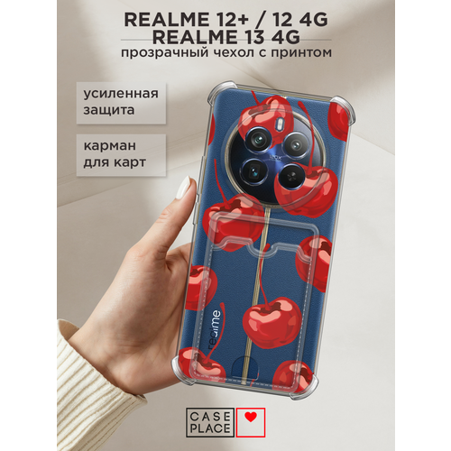 Чехол на Realme 12+/12 4G/13 4G (Реалми 12 Плюс/12 4G/13 4G) с картой и принтом Алая вишня