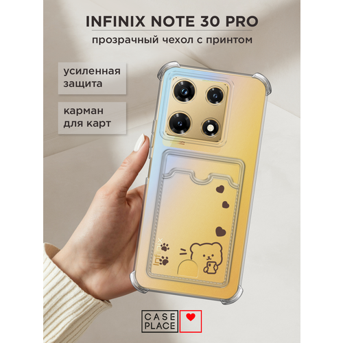 Чехол на Infinix Note 30 Pro (Инфиникс Нот 30 Про) с картой и принтом Мишка и сердечки