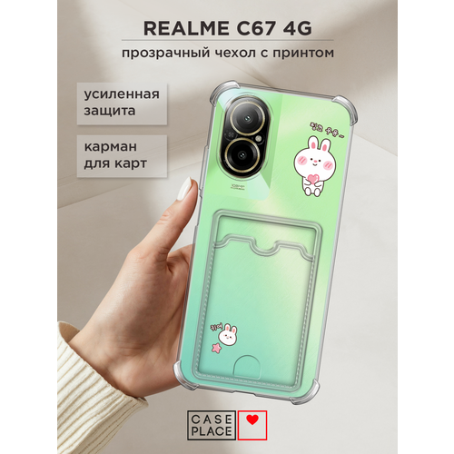 Чехол на Realme C67 4G (Реалми C67 4G) с картой и принтом Bunny with heart