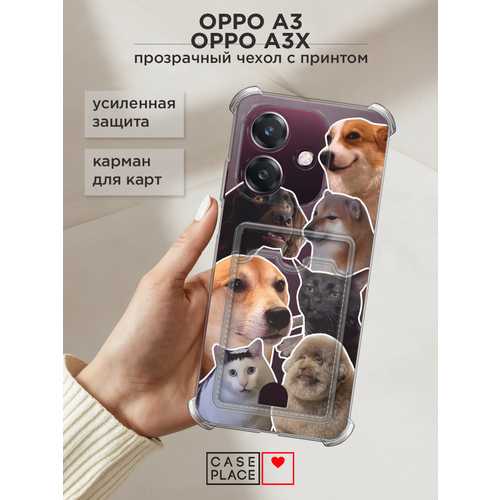 Чехол на Oppo A3/A3x (Оппо А3/A3x) с картой и принтом Мемы
