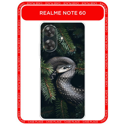 Чехол на Realme Note 60/60X / Реалми Нот 60/60X с принтом Серая змея на ёлке