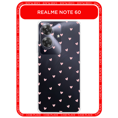 Чехол на Realme Note 60/60X / Реалми Нот 60/60X с принтом Розовые сердечки паттерн, прозрачный