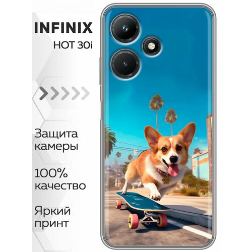Дизайнерский силиконовый чехол для Infinix Hot 30i / Infinix Hot 30i Корги на скейте