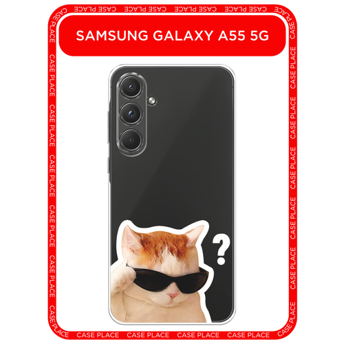 Чехол на Samsung Galaxy A55 5G / Самсунг Галакси А55 5G с принтом Кот в очках, прозрачный