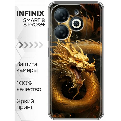 Чехол для Infinix Smart 8 4G, 8 Plus 4G, 8 Pro 4G с принтом Дракон золотой (Инфиникс Смарт 8, Смарт 8 Плюс, Смарт 8 Про)