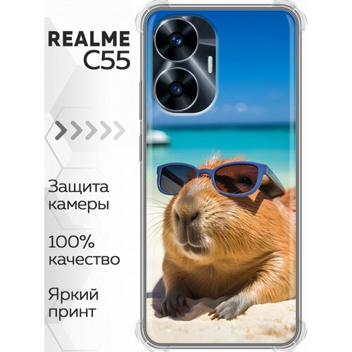 Чехол для Realme C55 с принтом Смешные капибары (Реалми C55)